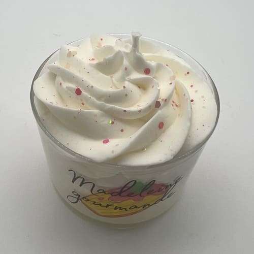 La lueur douce d’une bougie gourmande à la chantilly parfumée à la madeleine évoque une ambiance raffinée et nostalgique, qui fait honneur à la tradition pâtissière française. Cette petite merveille olfactive invite vos sens à un voyage gustatif unique, évoquant les souvenirs de délices sucrés et les moments de détente autour d’une tasse de thé.Lorsque vous allumez cette bougie, son éclat rappelle la douce lumière d’un après-midi tranquille dans une pâtisserie parisienne, où les arômes sucrés flottent dans l’air. Cette lumière chaleureuse crée une ambiance propice à la relaxation, parfaite pour les instants de calme, la méditation ou simplement pour savourer un moment de détente.La cire de cette bougie est imprégnée du parfum irrésistible de la chantilly onctueuse mêlée aux délicates effluves de la madeleine tout juste sortie du four. Chaque bouffée d’air est une invitation à un voyage sensoriel, transportant vos sens dans un monde de douceur et de gourmandise, où les arômes se mêlent harmonieusement pour créer une expérience olfactive inoubliable.
