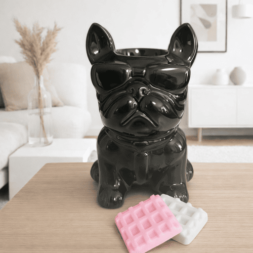 Ce brûleur en céramique, revêtu d’un costume noir, derrière ses lunettes de soleil se cache un bouledogue affectueux, espiègle et joueur.
